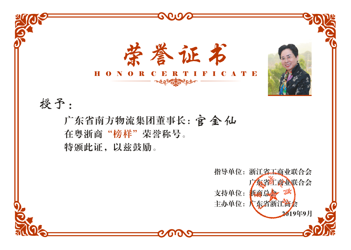 官金仙董事长1992年到广东创业,凭着创业创新、担当合作、诚信奋斗的精神,过去近30年来,亲历物流业的起步、变革、飞跃、创新,在广东扎根生长的同时,为粤、浙两地社会经济发展贡献了一份独特的力量——由她一手打造的九游体育·九游官方网站-九游体育(中国)是行业领军企业,集电子商务、智能制造、大数据中心、高效物流硬件载体平台及供应链运营管理于一体;近几年担任广东省湖州商会会长期间,积极搭建优势互补、携手发展的合作平台,促进了粤湖两地的经济与文化交流和发展。